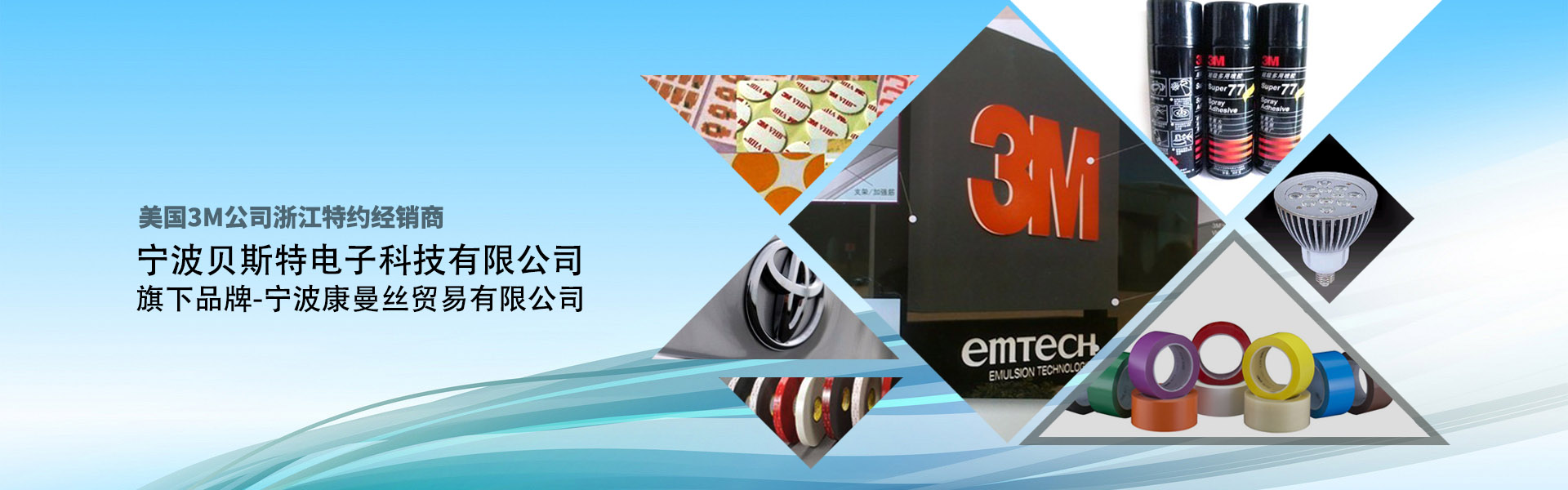 公司自建立以來,一向努力于美國3M公司產業產物的發賣及加工成型,2010年正式成為美國3M公司浙江特約經銷商,首要擔任3M產業產物在浙江地域的發賣、再加工及手藝辦事。本著“品質第一,辦事至上”的理念,依靠豐碩的經歷,本公司極力為泛博客戶供給優良的粘接處理計劃。